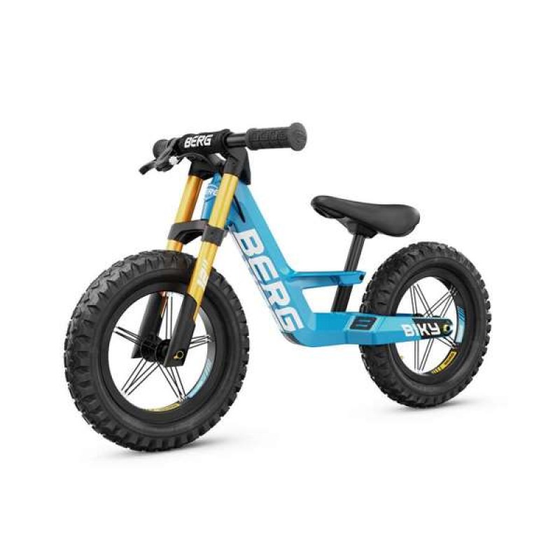 Like the other models in the BERG Biky family, this balance bike has an ultra-lightweight frame, a safe handlebar deflection limiter, an adjustable saddle and comfortable pneumatic tyres. This makes this sturdy blue balance bike ready for any adventure. Are you ready too?