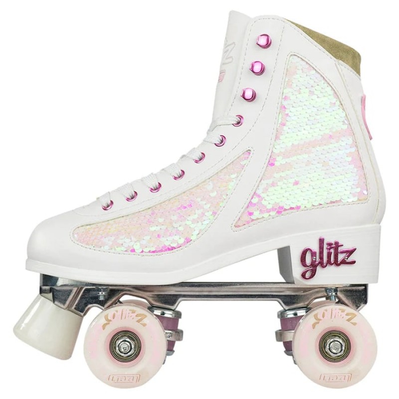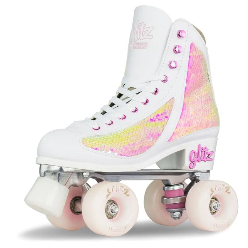 | Features | - Ultimate comfort and Ultimate Style! The Sequin finish has two tone panels that you can swipe with your hand to create different coloured custom designs. - Neoprene Backed Tongue for Ultimate comfort - Premium Urethane Bushings offer Superior turning - Colour matched Glitter woven laces and eyelets - SIGNATURE GLITZ Heel Brooch |