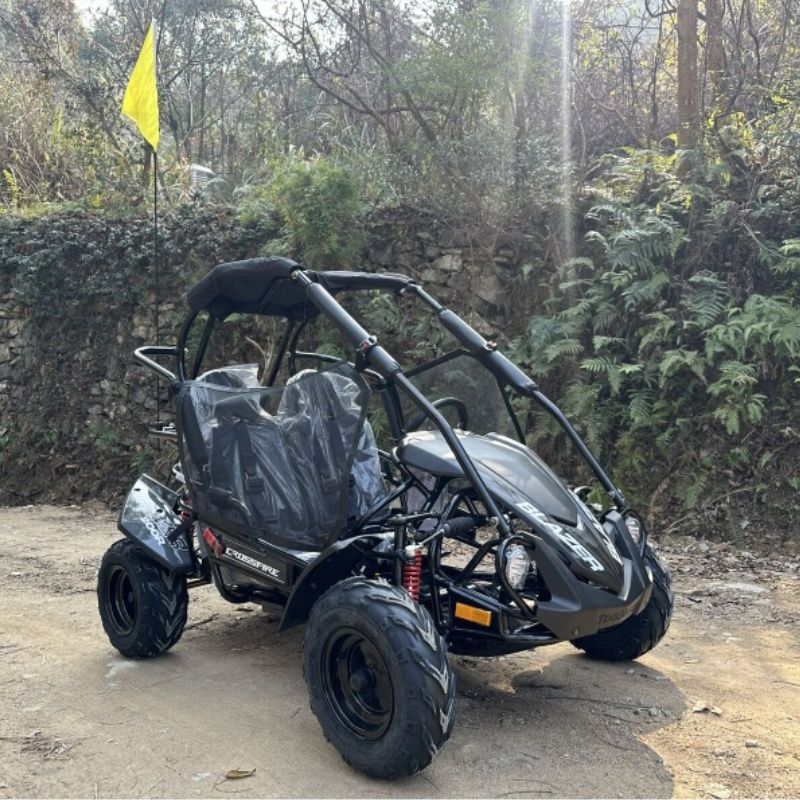 This durable mid-size off road buggy/Go kart is great for youth riders and will allow you to kick up some dirt at a max speed of 45 km/h. The Blazer is suitable either one or two riders and can hold up to 130 Kg total weight Rider Fuel and cargo, so you’re able to bring your friends along for a fun ride.The Crossfire Blazer 200R is a compact,affordable, fun-focused 200cc kids off-road buggy built for safe, supervised recreational use. Featuring a 4-stroke single-cylinder air-cooled engine, it delivers reliable performance for children and teens exploring trails, paddocks, and light off-road terrain.