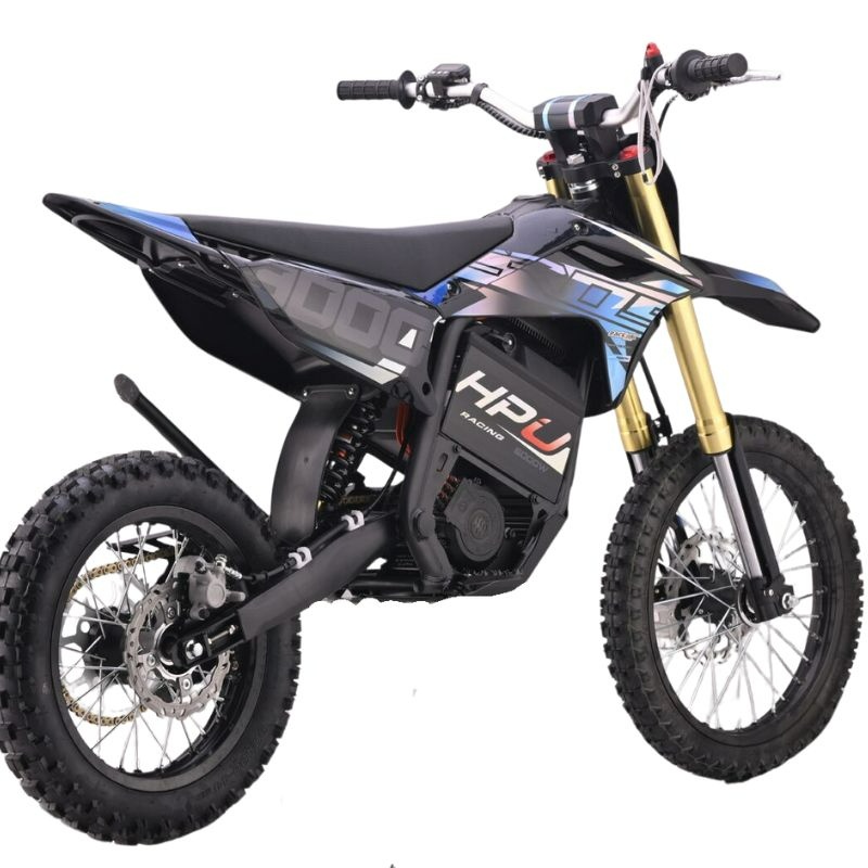 With a blistering 8000W peak power output from its 72V 35Ah ternary lithium battery, the ECR3000HPU delivers instant torque. The MY 26 version all come with Race ECU from the factory taking power from 6000W to 8000W aldo the 25Ah batteries are upgraded to35Ah inorder to accomodate the extra power draw.Riders can switch between Eco, Standard, and Race modes for tailored performance, from controlled trail cruising to full-throttle runs reaching up to 80 km/h.Equipped with hydraulic disc brakes, inverted fork suspension, and an automatic transmission, it offers a seamless blend of control, comfort, and raw power.Engineered to outperform electric rivals the ECR3000HPU represents the next generation of electric off-road dominance.Weighing just 75.5 kg, it combines agility with endurance, capable of delivering up to 50 km per charge. Built on a high-strength steel frame with 17/14-inch spoke wheels, it’s designed for riders up to 80 kg, offering serious performance without compromise.- High-Performance 72V Lithium Power - Equipped with a class leading 72V 35Ah 2520Wh lithium battery