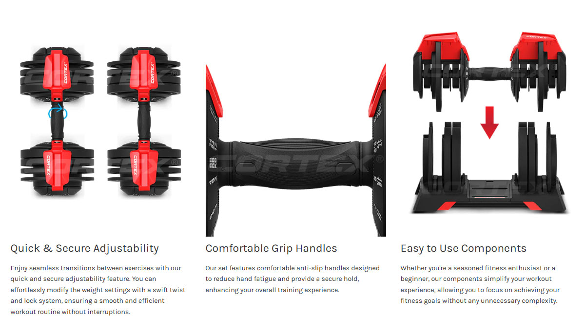 | Features | Adjustable from 2kg to 24kg, 36 Weight Combinations |
