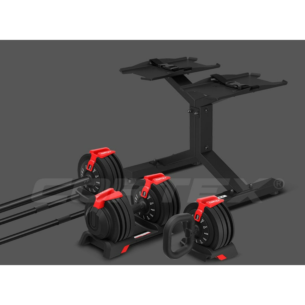 | Technical | High quality steel weights. Twist handle to adjust weights. All weight readings are in KG. Comes in pairs. Package comes with a stand for convenient storage and easy access. Fast RevoLock locking system. Knurled handle for better grip. |