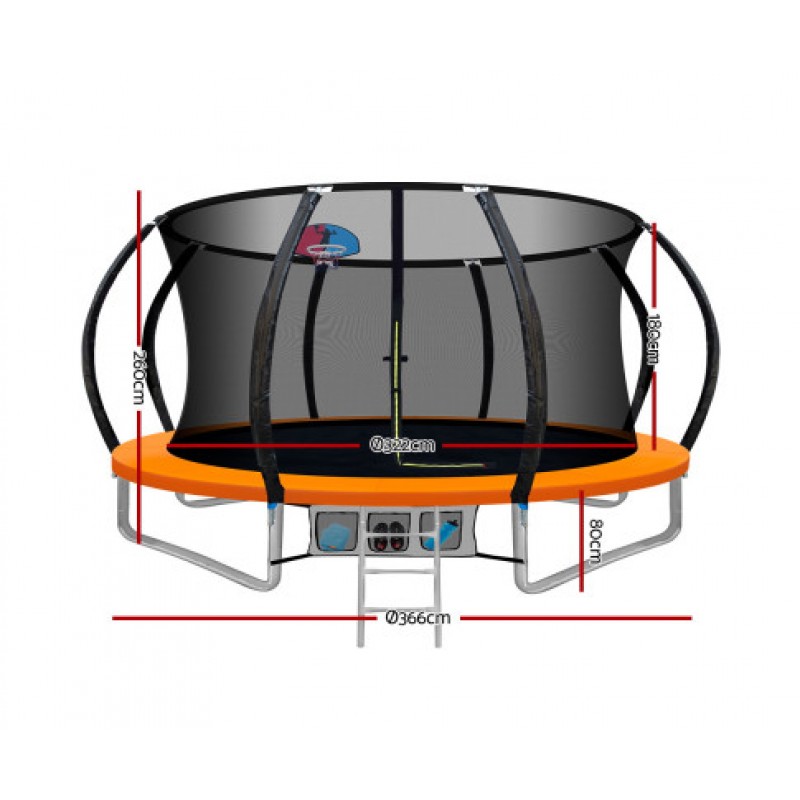Everfit 12ft Trampoline Round Trampoline with Basketball Hoop - Orange