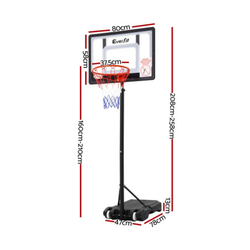 Featuring a mega-tough steel frame, the Everfit 32" Basketball System provides an instant set up that is suitable for kids and youth, junior players and grown-ups alike. It can be adjusted to your preferred height of between 1.6m and 2.1m. The regular-size sturdy 32" backboard is made from durable PVC and looks and plays like pro-style glass while the massive 50L capacity base fills easily with water or sand to provide a stable foundation. Not least, the roller wheels makes for easy maneuverability and the included nylon net is nice touch.