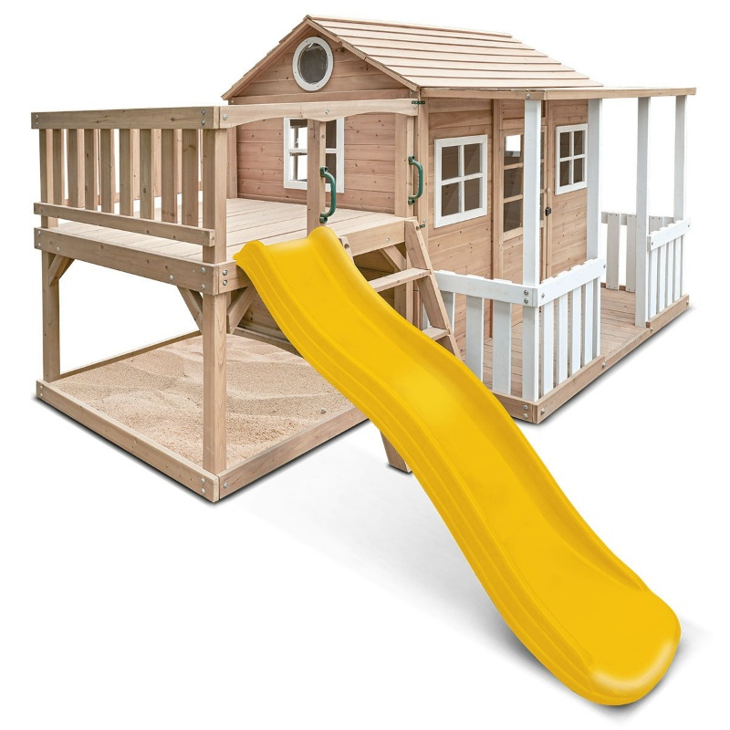 | Structure/Technical | Premium Timber. Plastic Windows. Door with magnetic latch. Undercover Verandah Area. Flooring included. Upper Platform with Slide. |