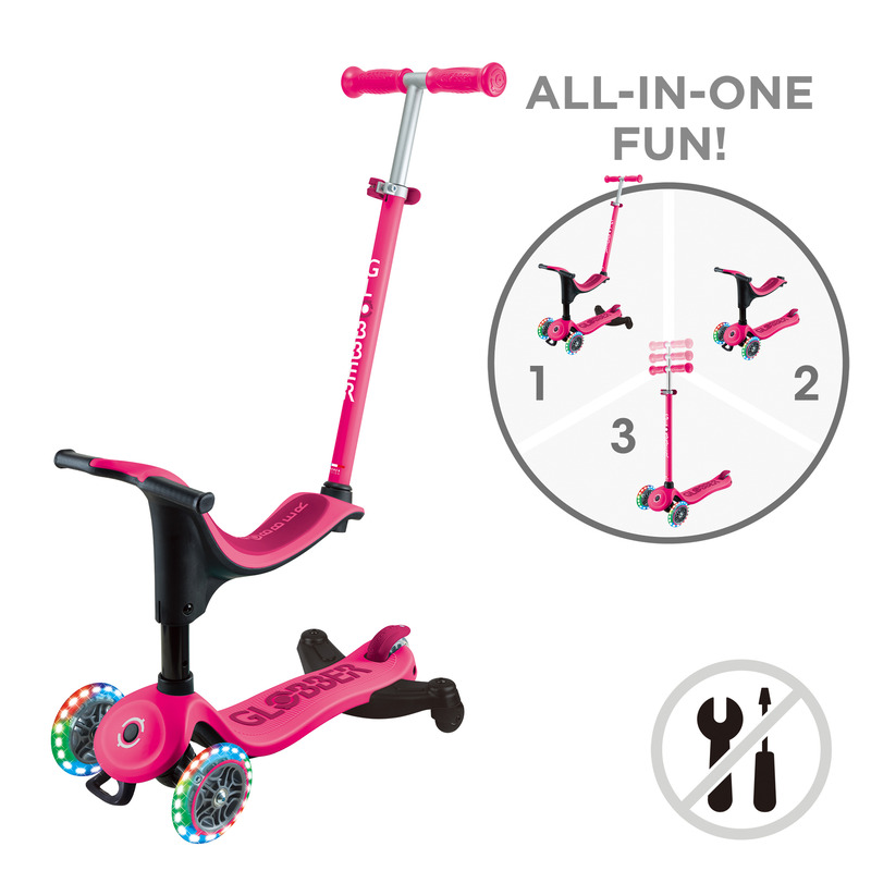 | Features | - Easy to transform the toddler scooter with seat between modes with a push of a button. Converts from ride-on| to walking bike and scooter for kids aged 15m to 3 + (3+ for scooter mode). - The parent handle on the seated version allows for 360 turning by the parent handle. |