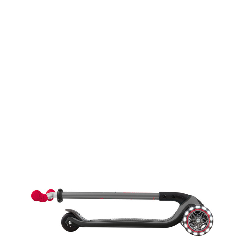 Globber’s MASTER LIGHTS scooter is a foldable scooter for kids, thanks to Globber's patented folding mechanism with a push button; folding a scooter is fast & easy! Easily fold the 3-wheel scooter with just a push of a button, allowing easy transportation in trolley mode
