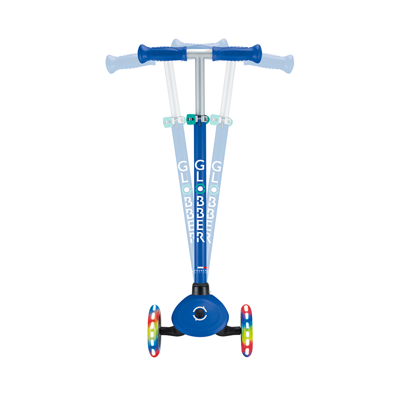 LIGHT-UP SCOOTER WHEELS |Comes with battery-free 121mm LED light-up front scooter wheels, which flash in red, green & blue. Thanks to dynamo technology integrated in the front scooter wheels’ core, the faster you scoot, the brighter the LEDs appear!