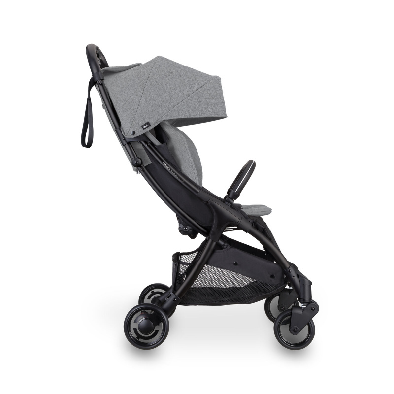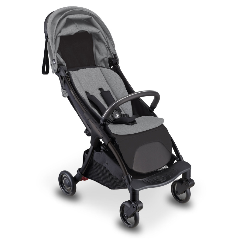 SAFE: Baby stroller with 5-point harness, parking device, anti-UV canopy, and more. Safety is paramount with STROLL•LITE. The 5-point safety harness and bumper bar, both equipped with soft pads for extra comfort, keep your little one snug, secure, and safe at all times.