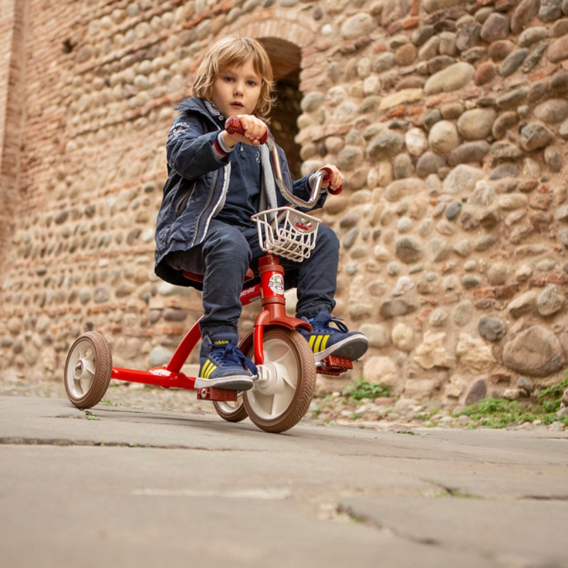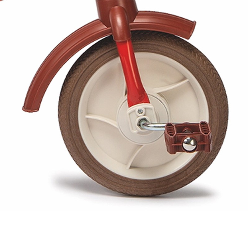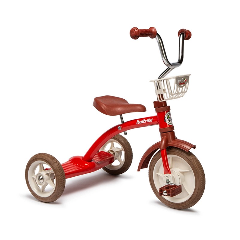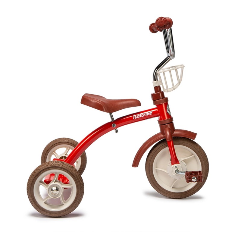 The Super Lucy tricycle is the metal Italian Tricycle with traditional lines and a classic, clean design, in green. Ideal to help children learn to ride on their own: integrating arms and legs with steering and pedaling. The Super Lucy tricycle is ideal for cultivating balance, gross motor skills, pedal pushing with the circular movement of going forward, stopping, slowing and reversing.