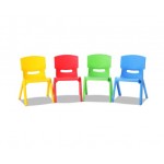 Use the Set either indoors or outdoors and the weather will not disturb it one bit. The rust-resistant paint is suited for use under the elements for the whole gamut of child focused activities. And with their richly coloured primary hues, the Table and Chairs are an instant draw for any enthused child with an eye for brilliant fun. And when all the playing is done, just stack the chairs up for easy storage.