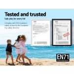 Perhaps our Kids Table and Chairs Set is the furniture your children need to get some sit-down fun into play. Made from HDPE plastic, the table is designed to be durable and easy to maintain. In fact, it uses powder coated steel for its legs and under-table frame so that it can stand up to robust use. The Table actually has a maximum weight capacity of 100kg. That adds up to some hefty allowances for even the most weight-challenged kids. Or even some crazy jumps on the table as kids are inclined to do from time to time. Naturally, everything about the Set is designed child-safe to EN71 European Safety of Toys standards. Round and smooth edges. Upgraded protected rubber corners. No toxic paint finishes. And a very eco-friendly ensemble. Better still, the Table can be adjusted above its standard 50cm height by up to 3cm more. That means the Table can literally 'grow' with your kids and their BFFs. How good is that! Use the Set either indoors or outdoors and the weather will not disturb it one bit. The rust-resistant paint is suited for use under the elements for the whole gamut of child focused activities. And with their richly coloured primary hues, the Table is an instant draw for any enthused child with an eye for brilliant fun. Make it a colourful world of creative play at the table for your child. Order our Kids Table today. And for chairs please click into our store and search 'Keezi kids plastic chairs 4pc'