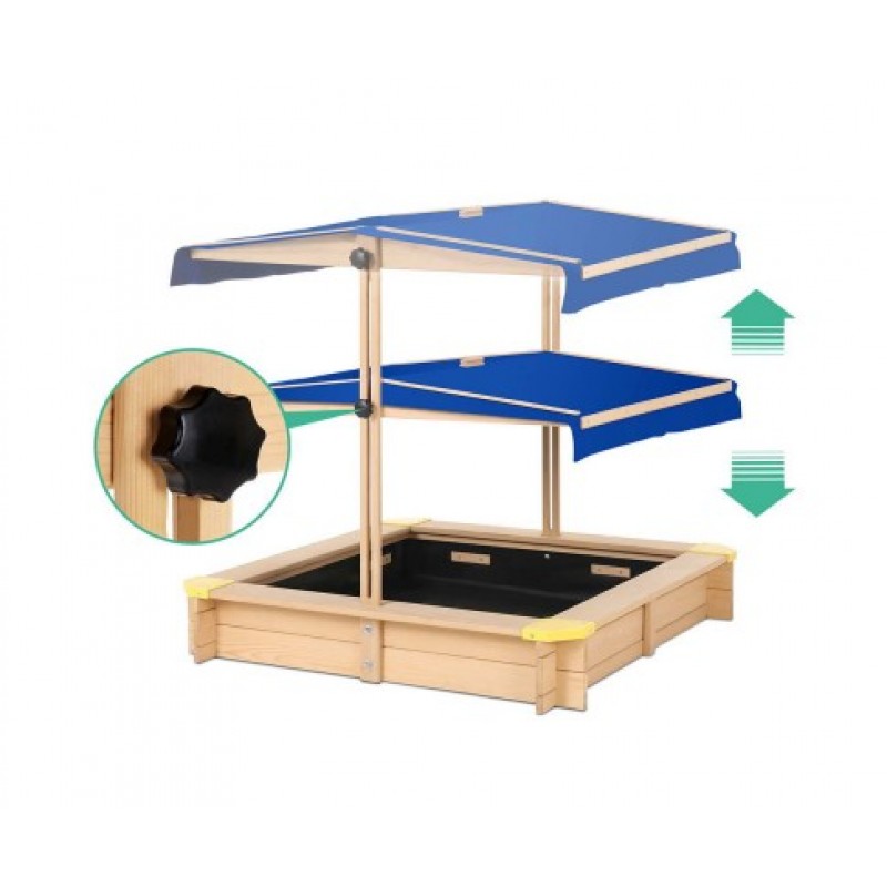This eco-friendly, quality treated Fir Wood Canopy Sand Pit is made to last against wood rot and insect damage. It also features rounded corners with plastic covers, not to mention its waterproof and UV-resistant canopy that can be leveled lower or higher depending on how you'd like it to be. A protective ground sheet is also included to protect it from ground moisture and damage. It also has an ample space for multiple kids to enjoy sand play. A lovely time under the sun is a joy with the family and is spent with this perfect canopy sand pit!