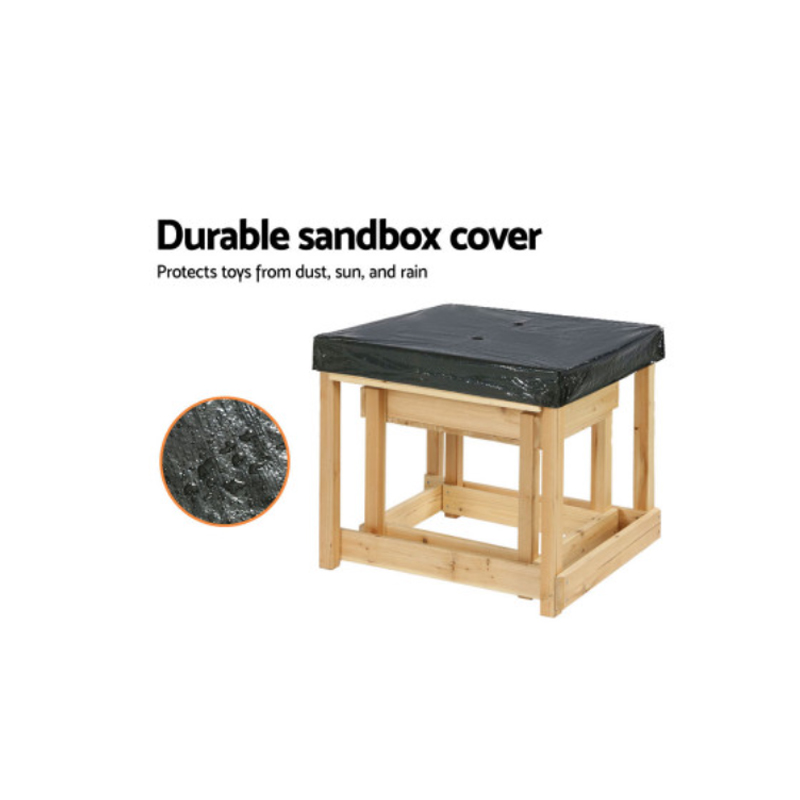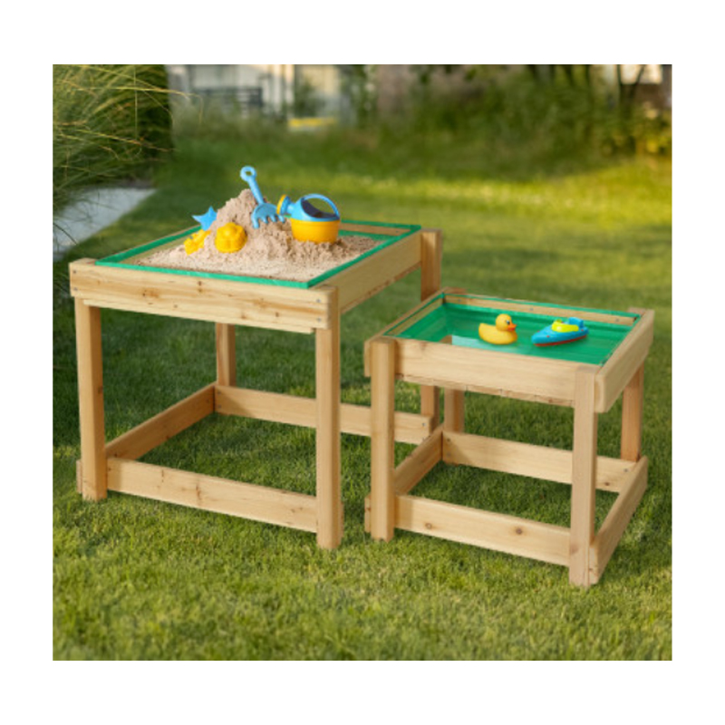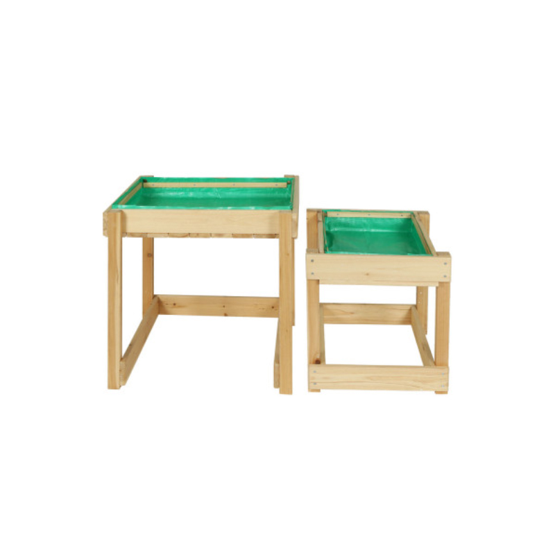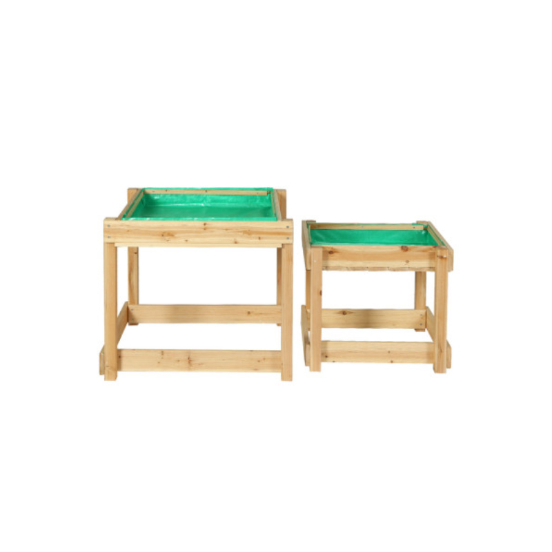 The playset comprises of a sandpit table and a water table. This playset comes with water and sand liners that act as a barrier to prevent water and sand from spilling. Crafted from solid fir wood, this playset is strong and durable and will stand the test of time. It also offers great resistance against wood rot and insect damage and comes with durable polyester protective covers for added protection.