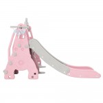 Our Keezi 3-in-1 play set comes with a long slide, safe swing, basketball hoop and a bonus ball and pump, giving your child unlimited hours of fun and engaging play. Crafted from durable, high-density non-toxic material, this fun-filled play set has a triangle force structure that prevents tilting. Plus, the water infusion design increases weight capacity and improves overall stability. Additionally, it has wide, gapless stairs, smooth rounded edges, firm-grip handles, U-shaped stable base, and a secured one-piece swing hanger, ensuring your child's safety while playing. You can use this play set both indoors and outdoors.