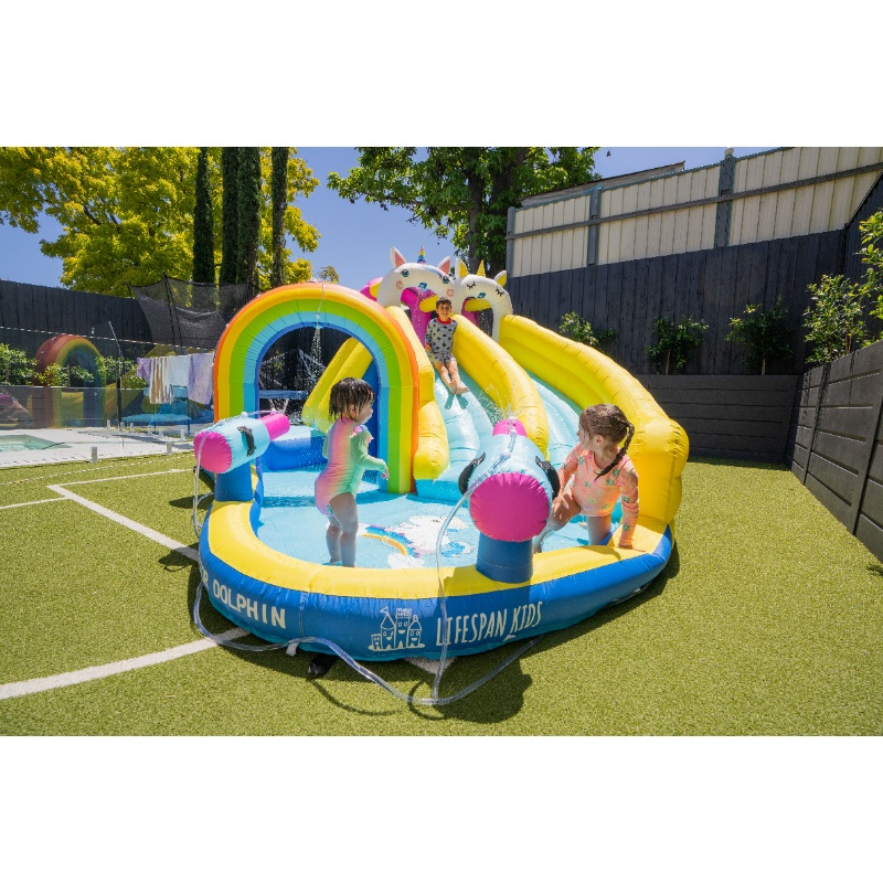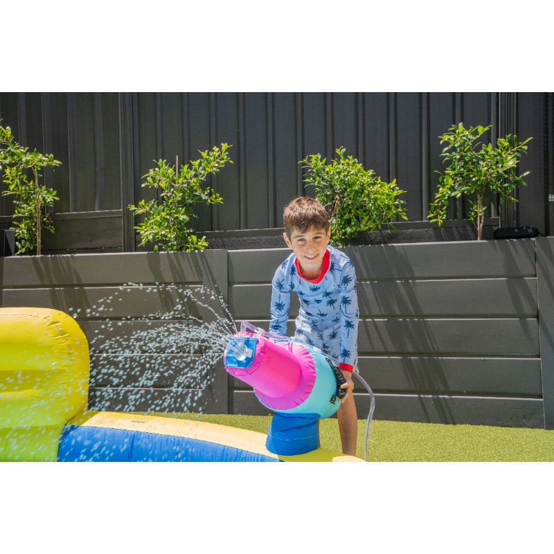 | Structure/Technical | Double Stitching for strength and durability. Space savvy when not used. Fun Climb and slide. UV Protected. Water-gun (requires garden hose). Anchor kit provided for anchoring to ground. |