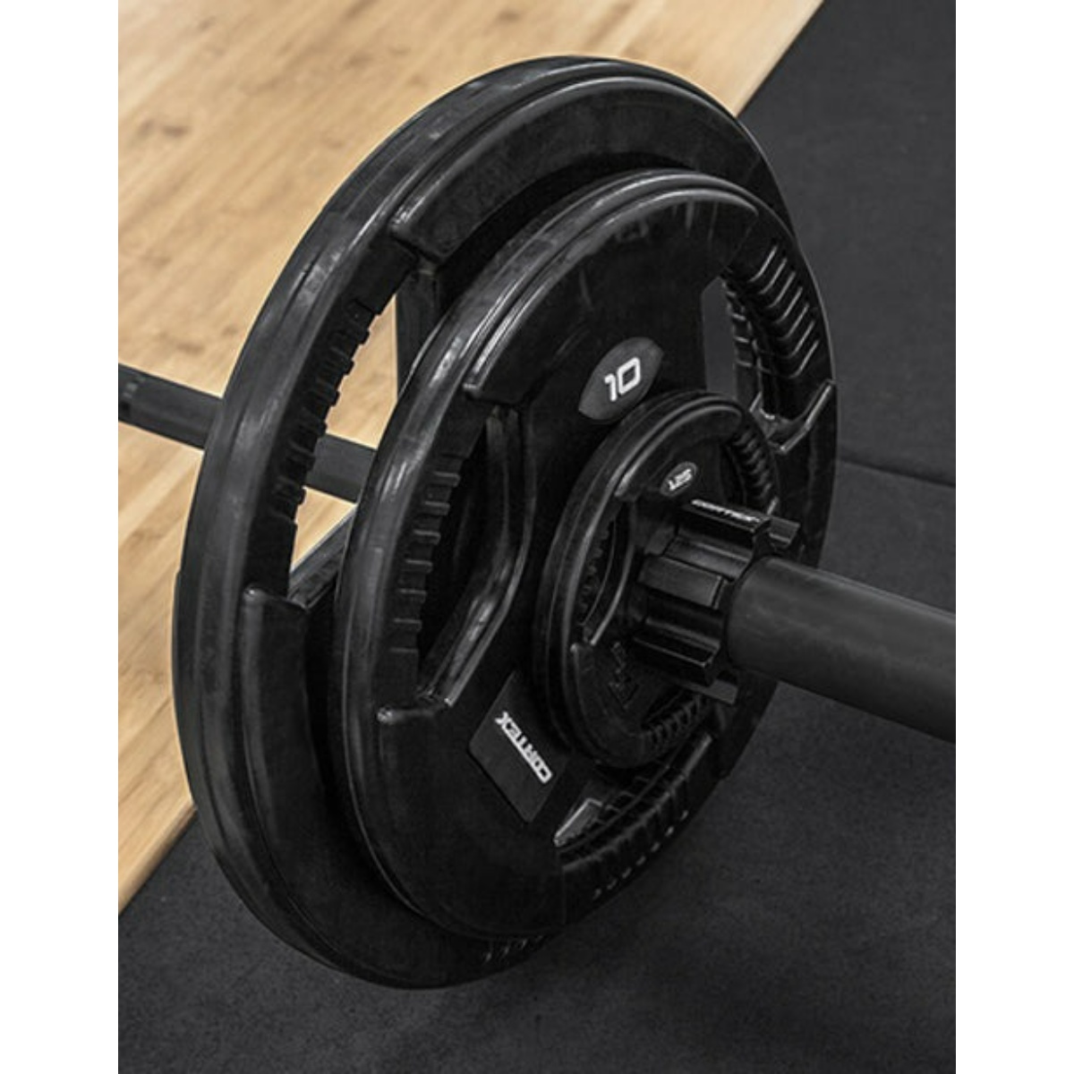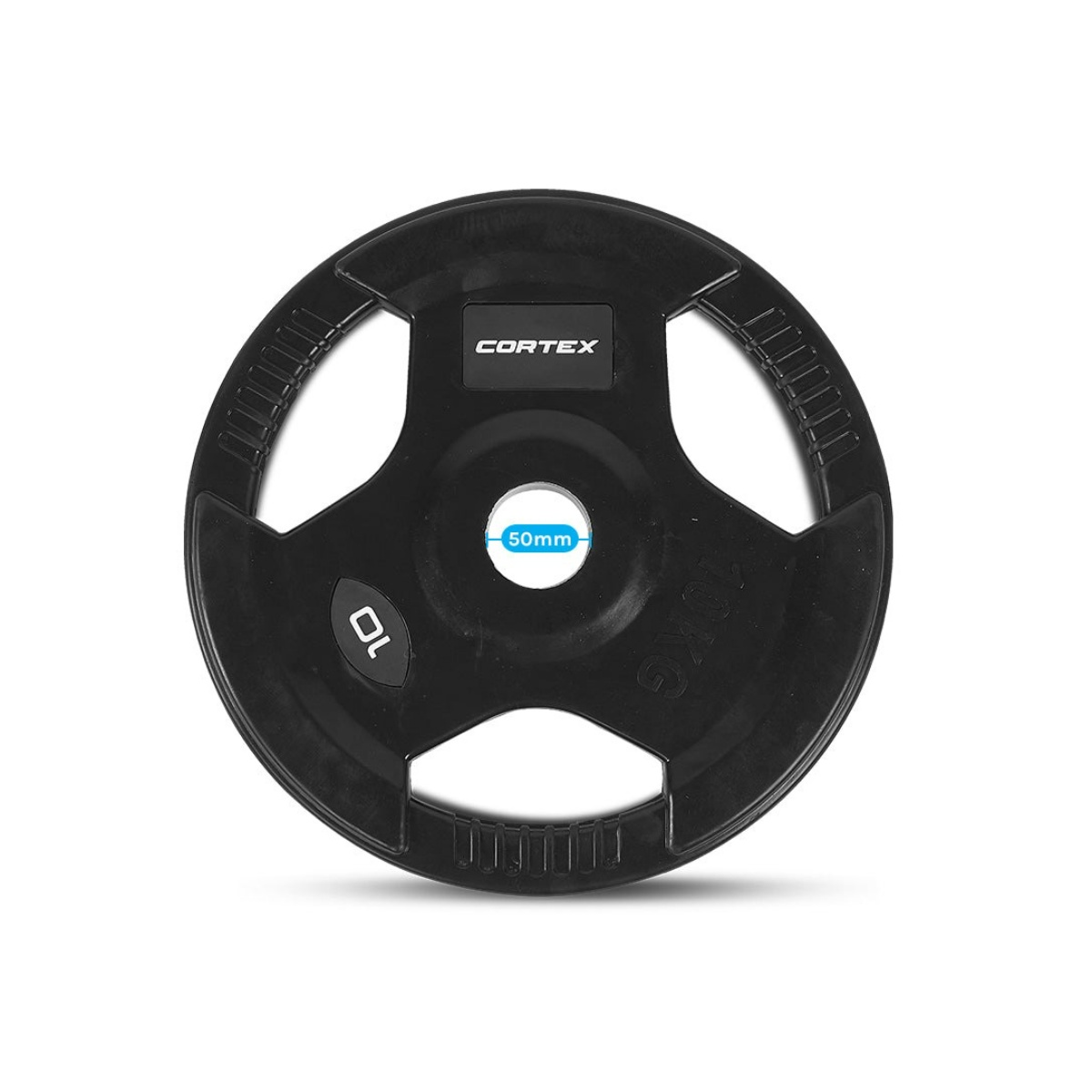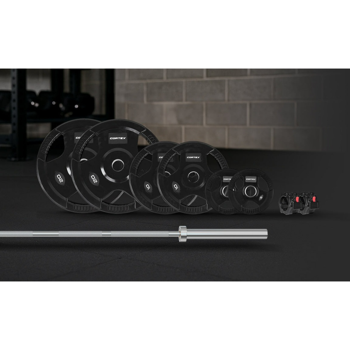 | Weight set | *2 x 20kg Tri-Grip Plate (Black) = 40kg, *2 x 10kg Tri-Grip Plate (Black) = 20kg, *2 x 5kg Tri-Grip Plate (Black) = 10kg, *1 x CORTEX SPARTAN100 20kg Olympic Barbell with Lockjaw Collars, *Weight Plate Set Total of 90kg. |