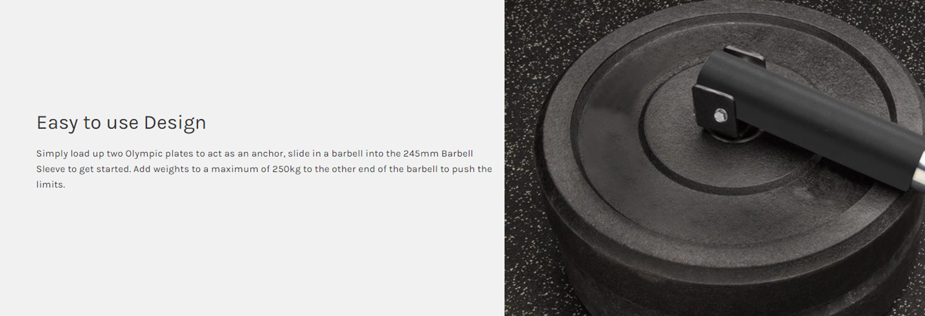 | Assembled Dimension | Sleeve Length: 245mm Post Height: 200mm Designed for 50mm Olympic Bars & Weights |
