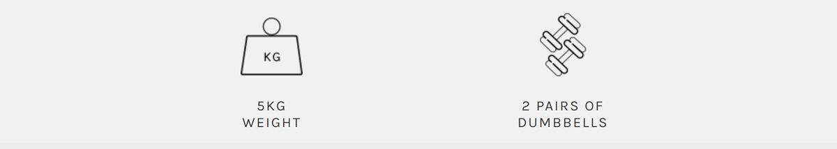 | Includes | 2 x 5kg Dumbbells |