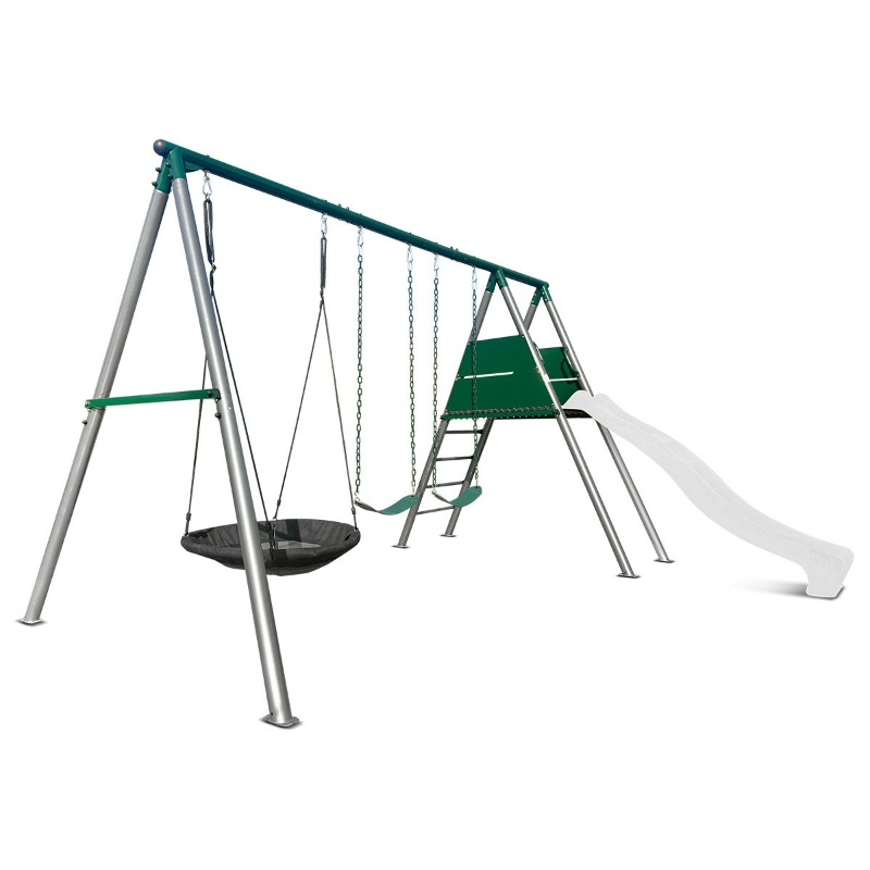 Lifespan Europa Commercial Grade Steel Swing Set with Climb & 2.2m Slide - White