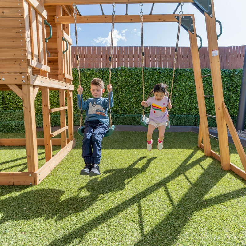 | Safety | Meets Australian Safety Standards (AS/NZS 8124, Part 1,2,3,6). Not suitable for children under 36 months - fall hazard. Adult set-up required. Adult supervision required at all times during use. Only for domestic use. Outdoor use only. Natural Timber product, wood colour may vary. Products may vary slightly from images shown. |