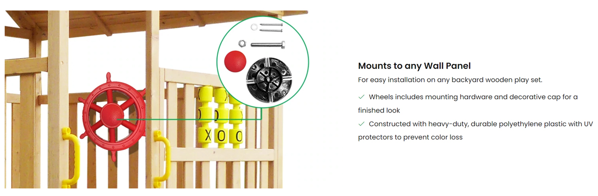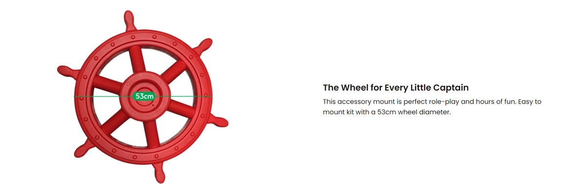 Yarr! The waves are choppy, but we have our best navigator at the helm to keep us on course. The Boat Steering Wheel can be installed on any number of outdoor play equipment, including our huge range of cubby houses and sandpits. Get ready to set sail cap'n.