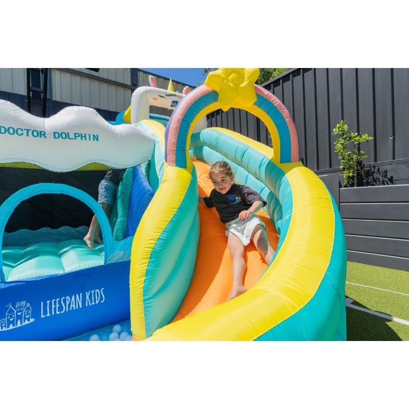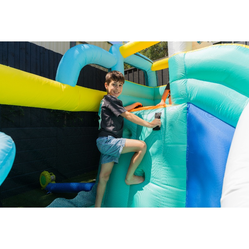 | Structure/Technical | Double Stitching for strength and durability. Space savvy when not used. Fun Climb and slide. UV Protected. Water-gun (requires garden hose). Anchor kit provided for anchoring to ground. |