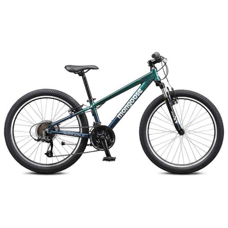Mongoose Rockadile 24-inch bike is a versatile, kids mountain bike designed for riders ready to tackle off-road trails and urban adventures. With a lightweight aluminium frame, responsive front suspension, and 24-inch knobby tyres, it provides stability, comfort, and excellent traction on a variety of surfaces. Featuring a 7-speed Shimano drivetrain, it ensures smooth shifting and easy handling for beginners.