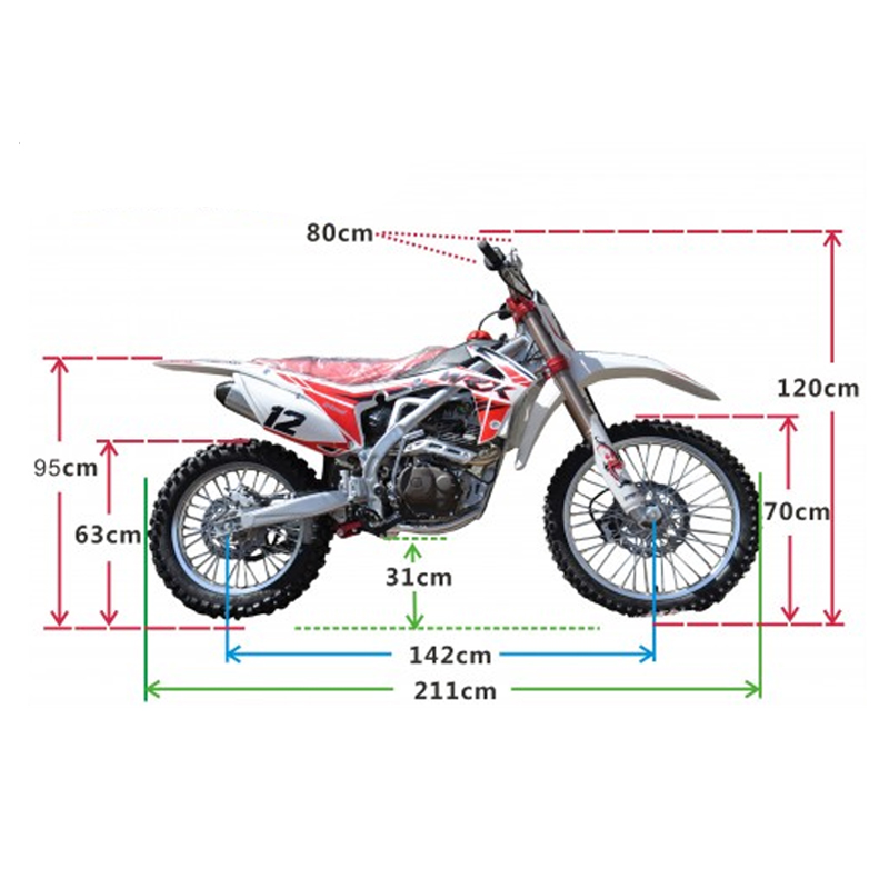 4 Stroke Engine (5 Speed Manual), Upside down HP Front Suspension Forks, Electric Start and Kick Start, Chrome Performance Exhaust, Dual Hydraulic Brakes, Big Wheel 21"+18", Ground Clearance 31mm.