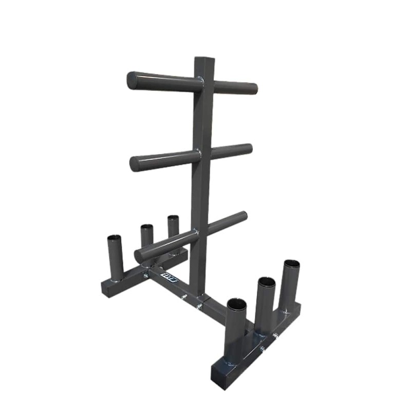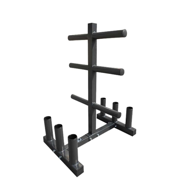 The rack accommodates Olympic-sized 51mm weight plates and 50mm Olympic bars. There is room for multiple plates on each of six weight plate spokes. Even better, six additional outside spokes give you a convenient place to store standard-sized gym bars. This piece of equipment is constructed with a heavy-duty steel, and it's easy to assemble with full instructions included. Please note that weight plates and bars are not included. Eliminate the mess at the gym or at the home gym. Purchase the Weight and Bar Gym Rack today and save.