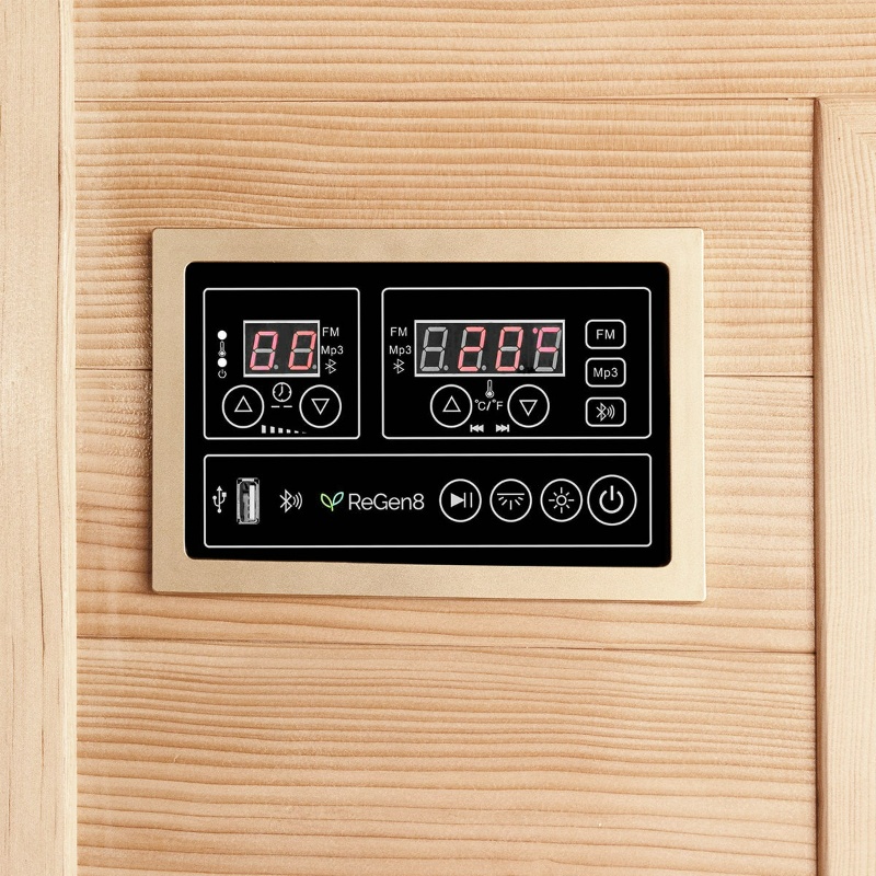 | Heating Elements | 9x Carbon Fibre Infrared Heating Panels (2200W). Back, Left, Right, Leg, Foot Heaters. |