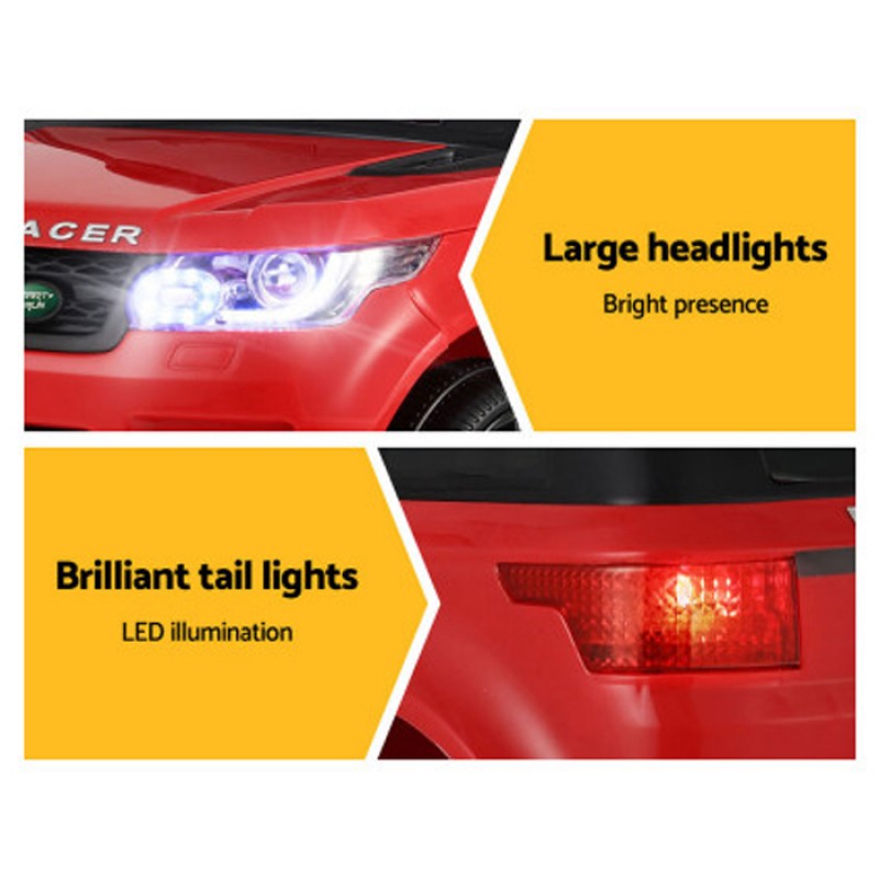 Give your passionate little drivers a real-like driving pleasure and experience with this Range Rover Inspired kids ride on car. It's sure to make your young drivers happy with its looks, performance, and charisma. This ride on car makes an awesome present for your little driver as well as helps to foster gross motor skills in them. It features a distinctive exterior design with a brilliant lacquer finish and solid build. It has 4-wheel suspension for shock-absorbing and ultimate comfort, premium slip-resistant tyres, power indicator, smooth acceleration to prevent sudden jerks and stops, and a spacious seat and belt for maximum comfort and protection. Plus, it has striking headlights and reverse lights, working doors with a lock for security, and other functions like MP3 connection, built-in music and lights, flashing lights with music, and powerful 50W twin motors for a real-like driving experience. Our Range Rover Inspired kids ride on car is battery operated with up to 2 hours runtime per full charge and comes with a SAA-approved charger for safer and faster charging. With two control modes, the adult remote-control function and EN71 Standard Safety of Toys certification ensures the safety of the child. Gift your little ones this real-like and robust Range Rover Inspired kids ride on car and watch them having unlimited fun with their mates.