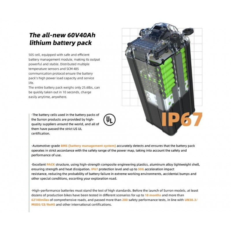| Battery | 60V / 40Ah _21700 removable lithium-ion battery |