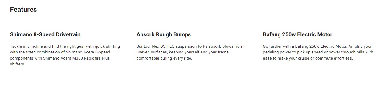 | Motor | Bafang G330.250c - Max Torque 80Nm |